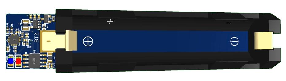Single-cell 18650 lithium battery holder for portable and off-grid power applications.