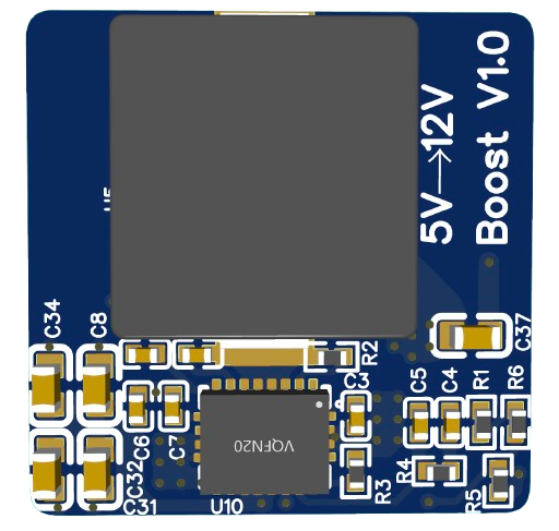 Boosts 5V input to supply the 12V power bus.